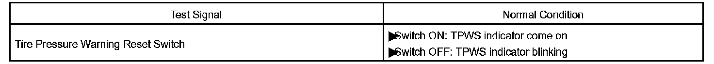 - Operation of the tire pressure warning reset switch can be checked in TEST MODE.
