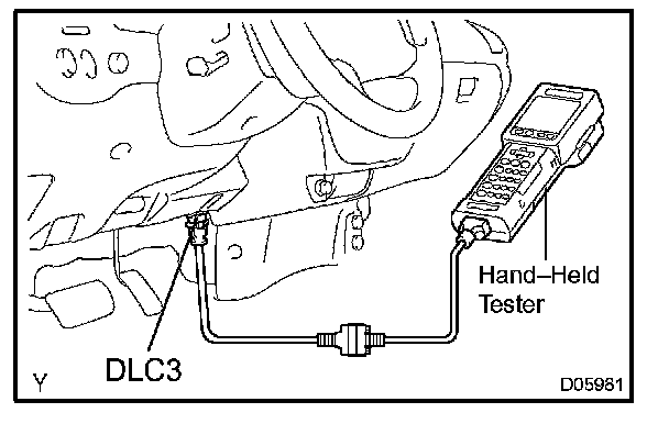 b. Connect the hand-held tester to DLC3.