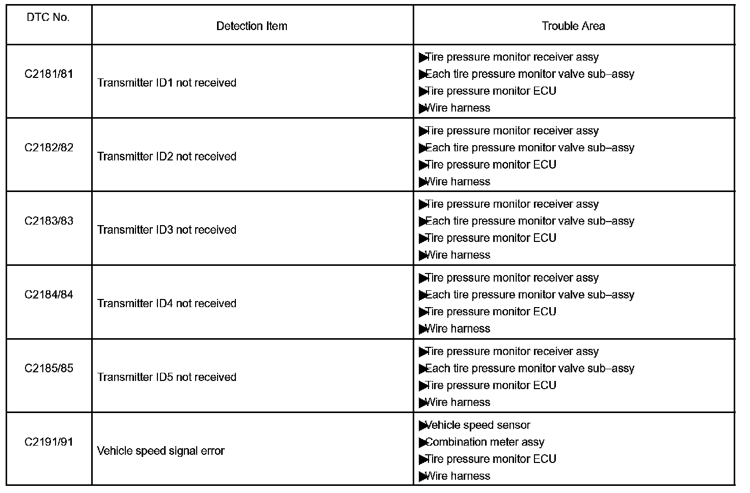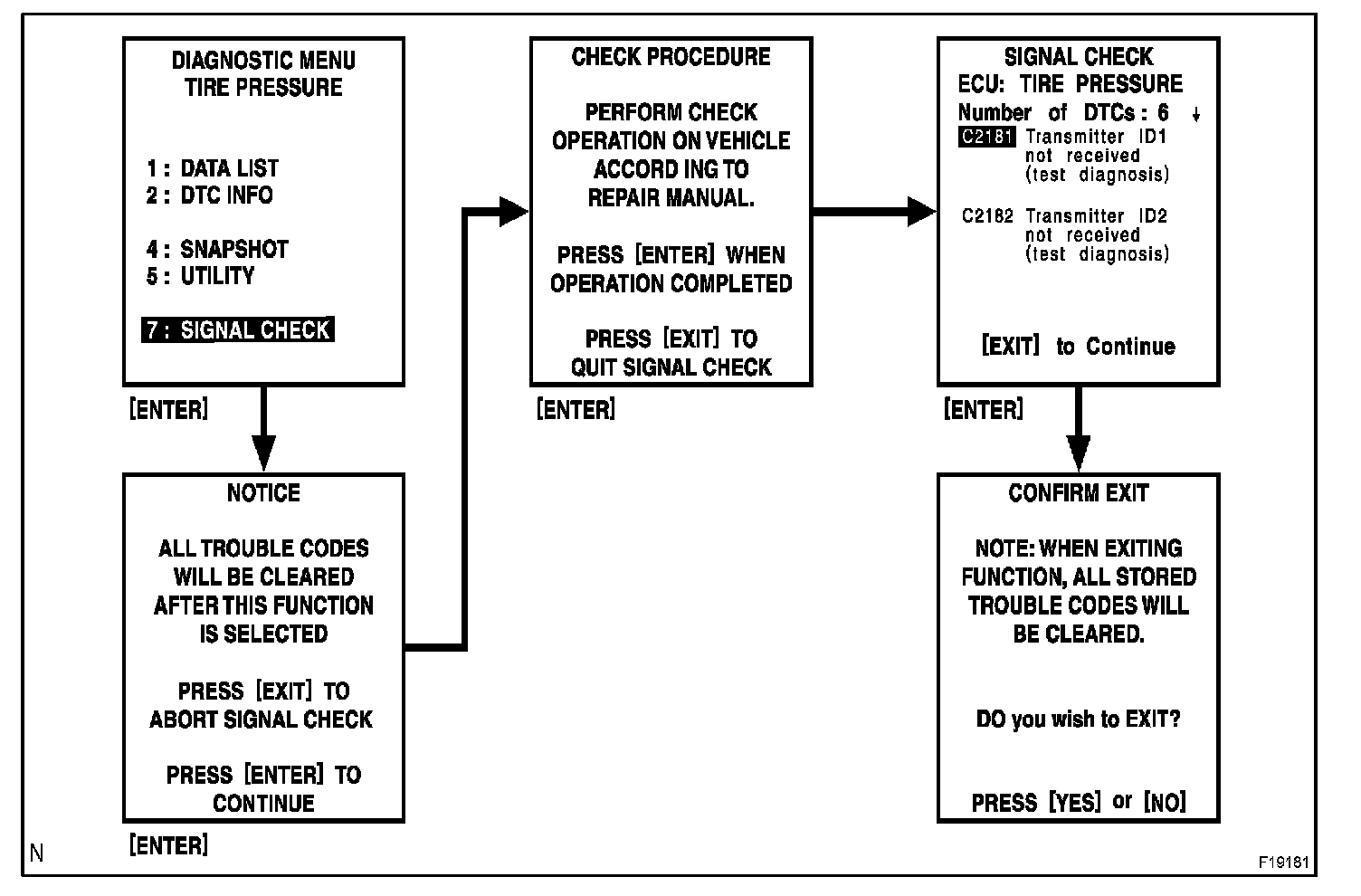 - When entering signal check, the tire pressure monitor ECU sets all the signal check DTCs first.