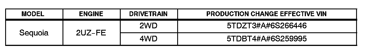 ^ 2005 - 2006 model year Sequoia vehicles produced BEFORE the Production Change Effective VINs shown below.