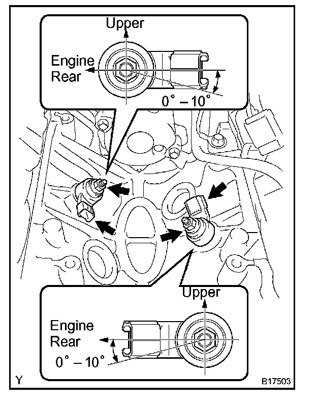 a. Install the 2 knock sensors with the 2 nuts as shown in the illustration.