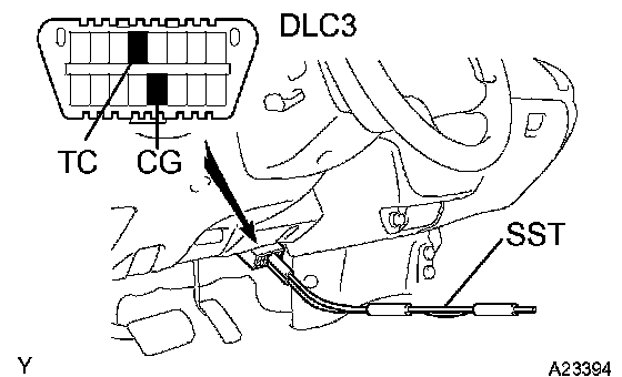 2. Using SST, connect terminals TC and CG of the DLC3.
