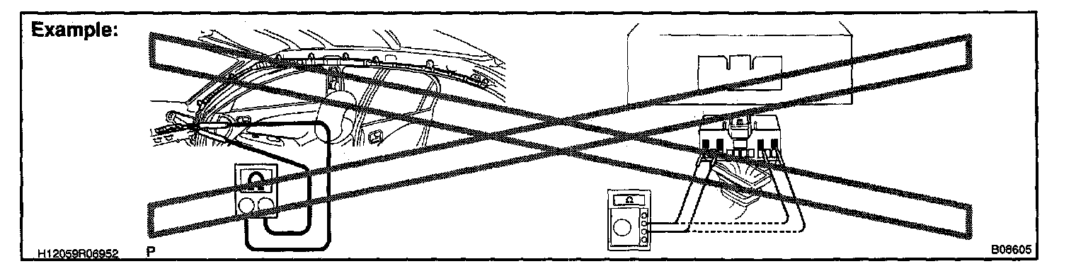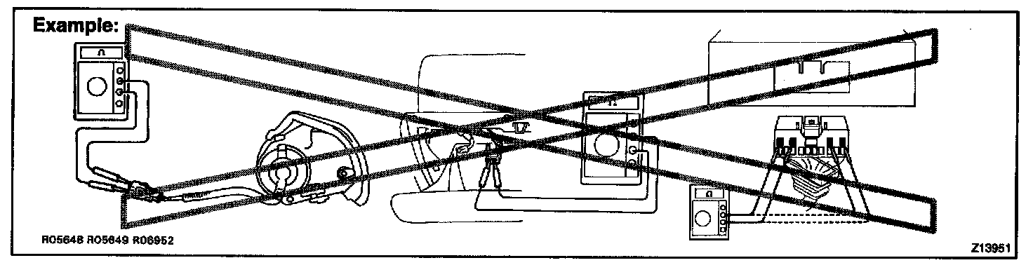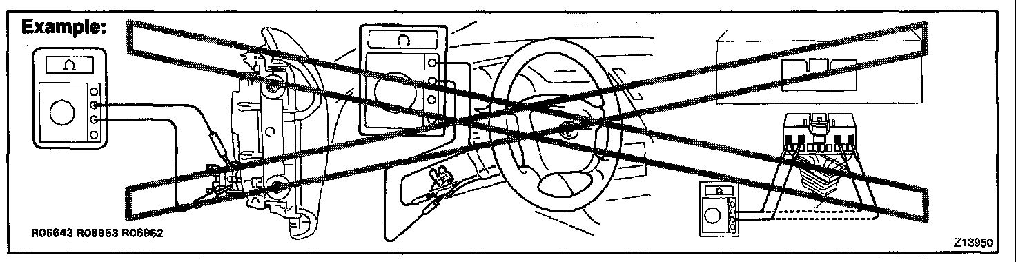 2. Never measure the resistance of the air bag squib (This may cause the air bag to deploy, which is very dangerous.).