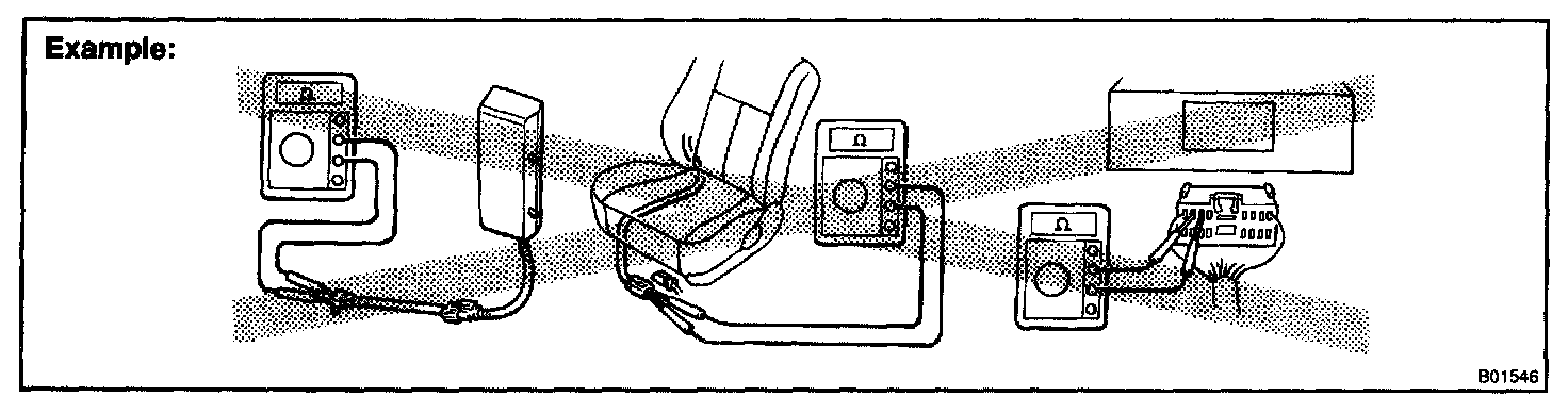 2. Never measure the resistance of the air bag squib. (This may cause the air bag to deploy, which is very dangerous.)
