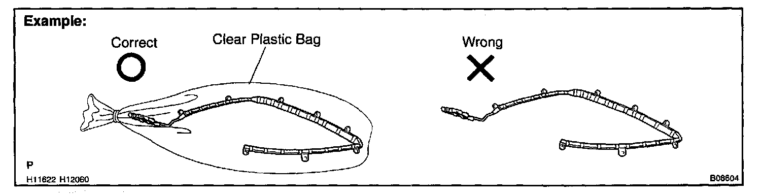 1. Always store a removed or new curtain shield air bag assembly in a clear plastic bag, and keep it in a safe place.