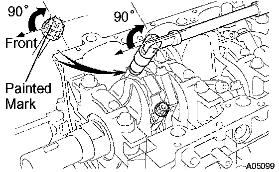 Retighten the cap bolts by 90° as shown.