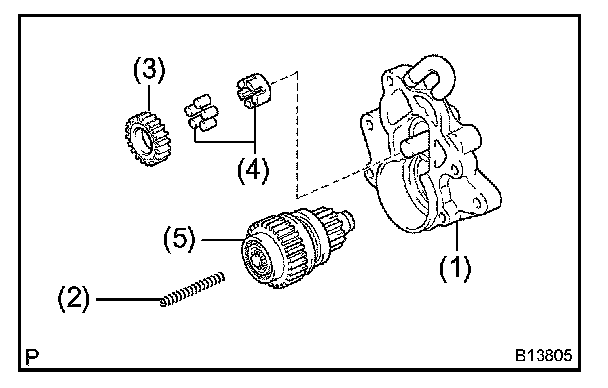 HINT: At the time of assembly, use high-temperature grease to lubricate the bearing and gears when assembling the starter.