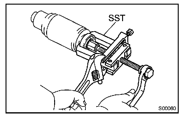 HINT: At the time of assembly, please refer to the following items. Apply grease to the return spring and insert the return spring into the clutch shaft hole.