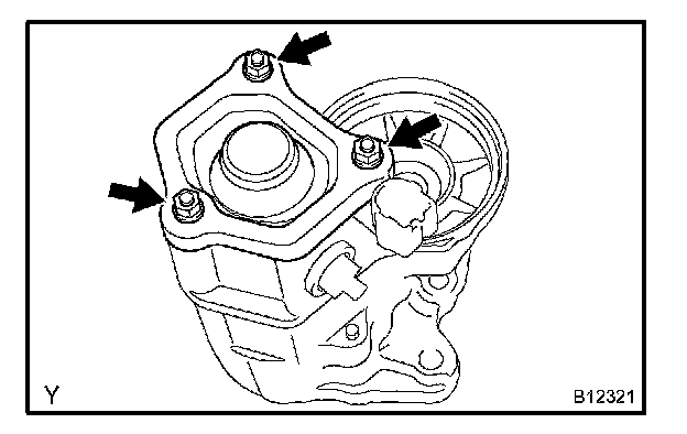Install the plunger, the new gasket and the end cover with the 3 nuts.