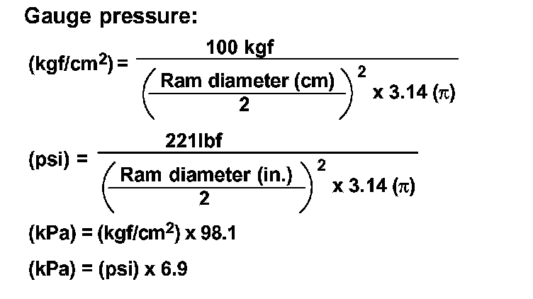 - Check the diameter of the hand press ram. Then calculate the gauge pressure of the press when 981 N (100 kgf, 221 lbf) of force is applied.