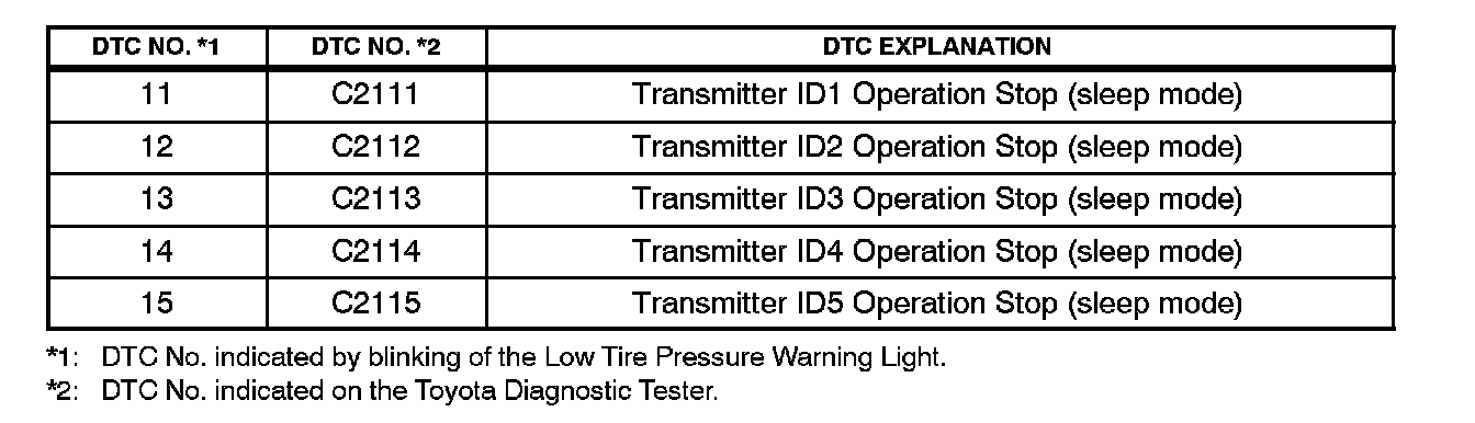 ^ The Diagnostic Trouble Codes (DTC) listed below may be stored in the system until the tire pressure sensing transmitters are activated. The codes will automatically clear when the tire pressure sensing transmitters are activated.