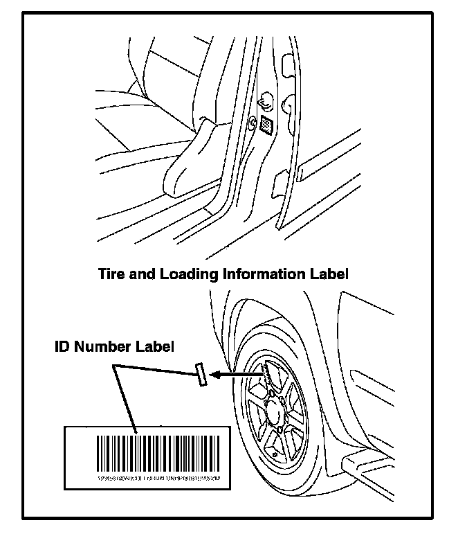 3. Adjust all tires to the standard tire inflation pressure, as indicated on the tire and loading information label on the vehicle. Then remove the ID number label attached to the wheel and discard. Check that the Low Tire Pressure Warning Light goes OFF, after all the tire pressure sensing transmitters are activated.
