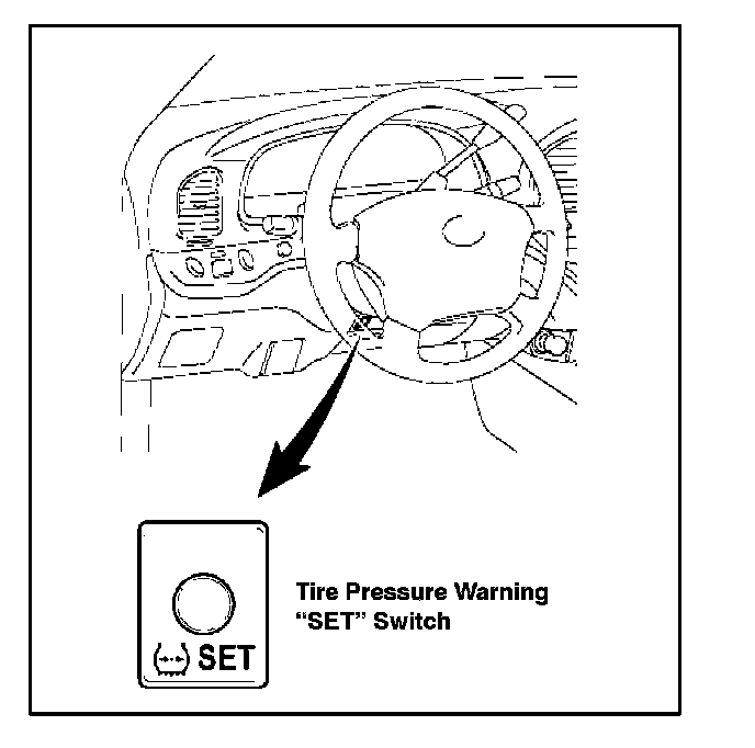 A Tire Pressure Warning "SET" Switch has been added to compensate for various OEM tire size and inflation pressure differences. The Tire Pressure Warning "SET" Switch is pressed after the tire pressure is adjusted to the specification listed on the tire and loading information label is attached to the door jamb.
