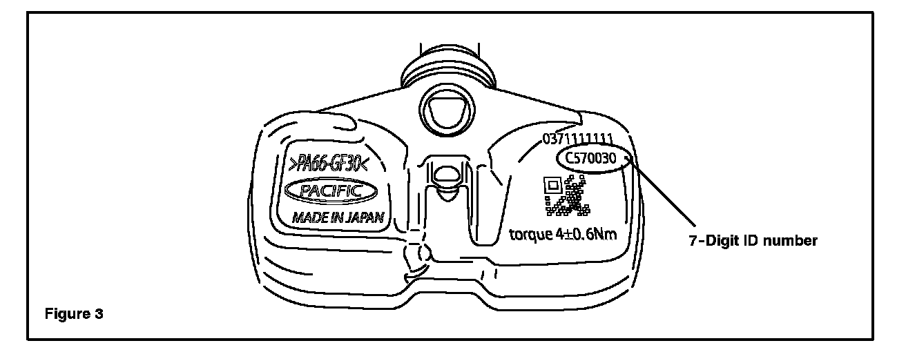 Each tire pressure sensor has a unique ID number (refer to Figure 3 in this TSB). These ID numbers must match the numbers registered in the TPWS ECU. In the event that one of the following services are performed, the ID numbers must be manually re-recorded in the TPWS ECU to ensure proper operation: