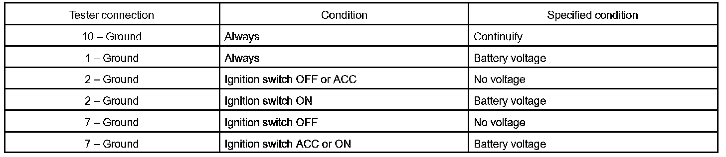 If the circuit is not as specified, inspect the circuit connected to other parts.