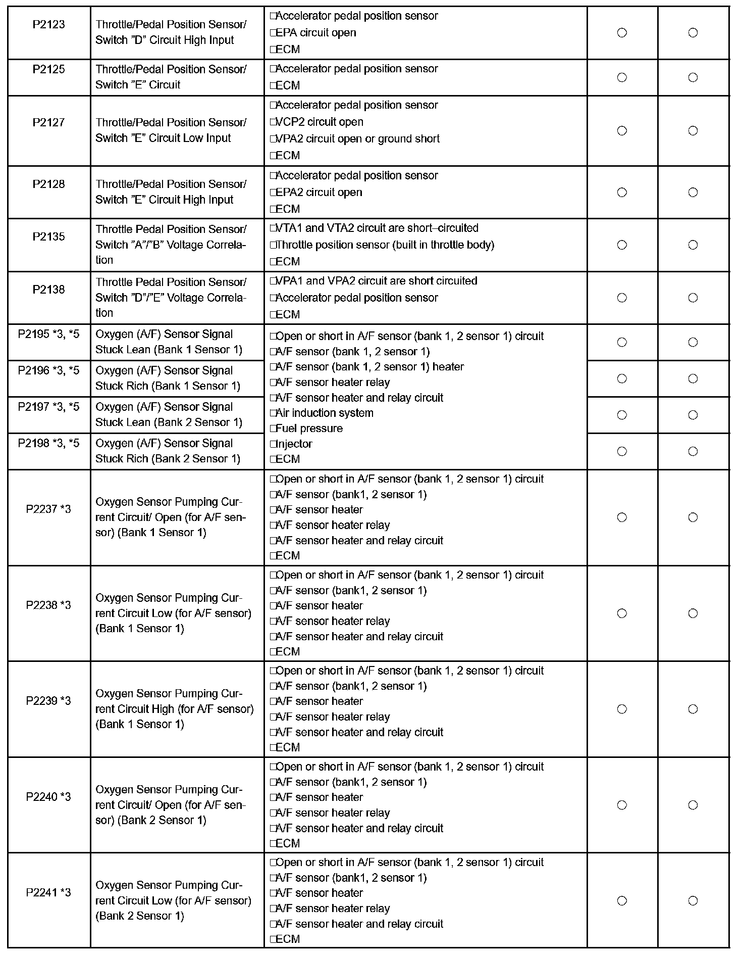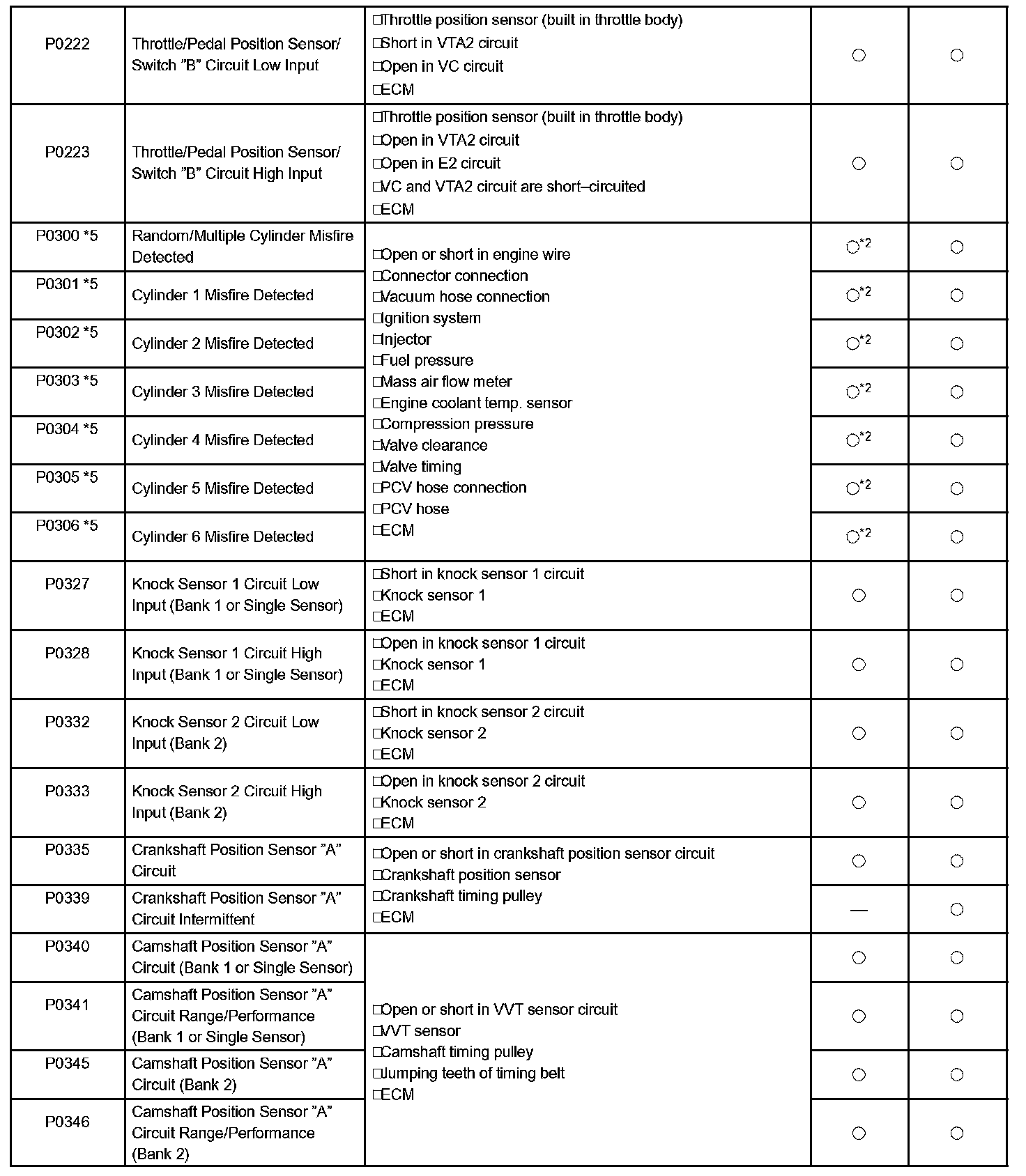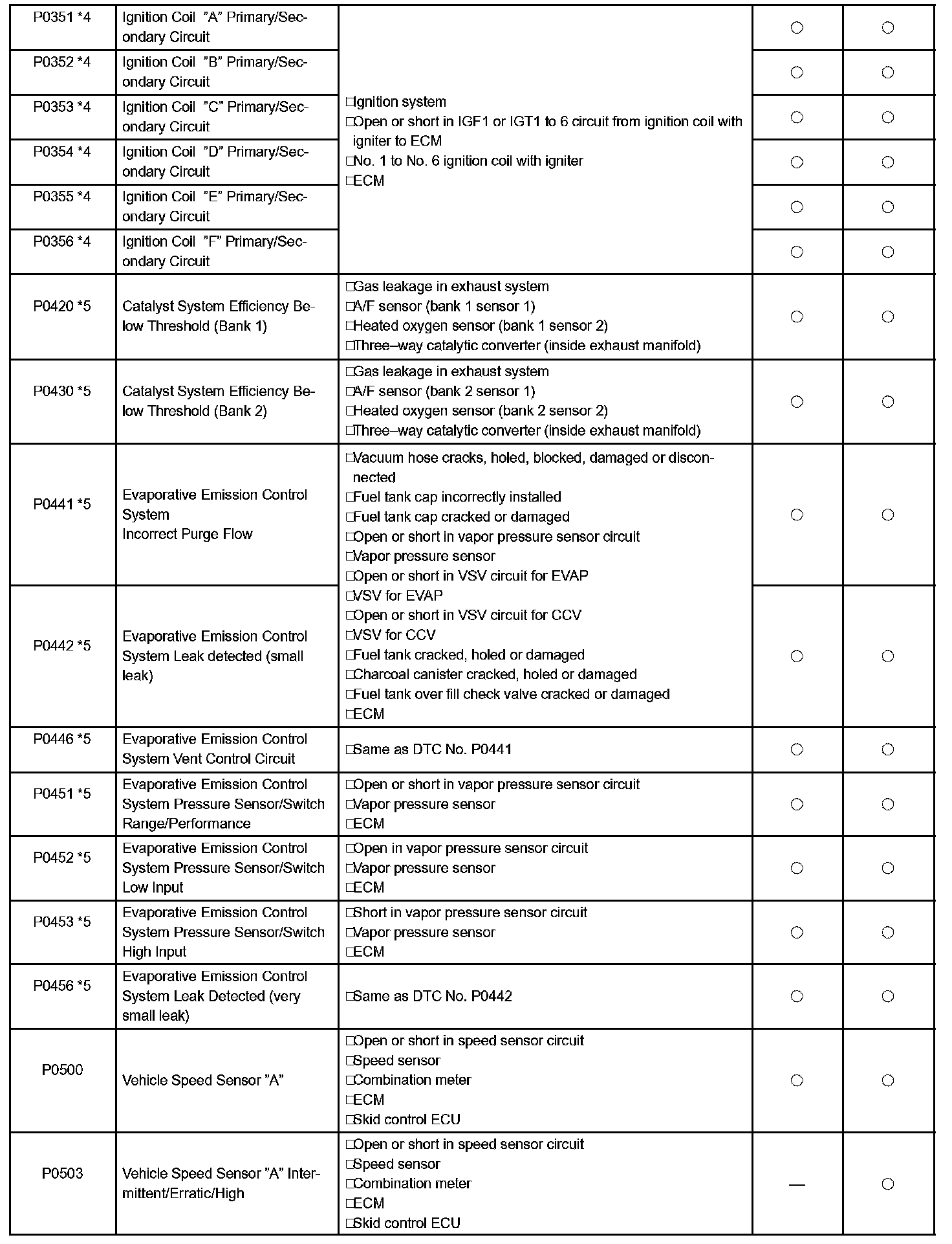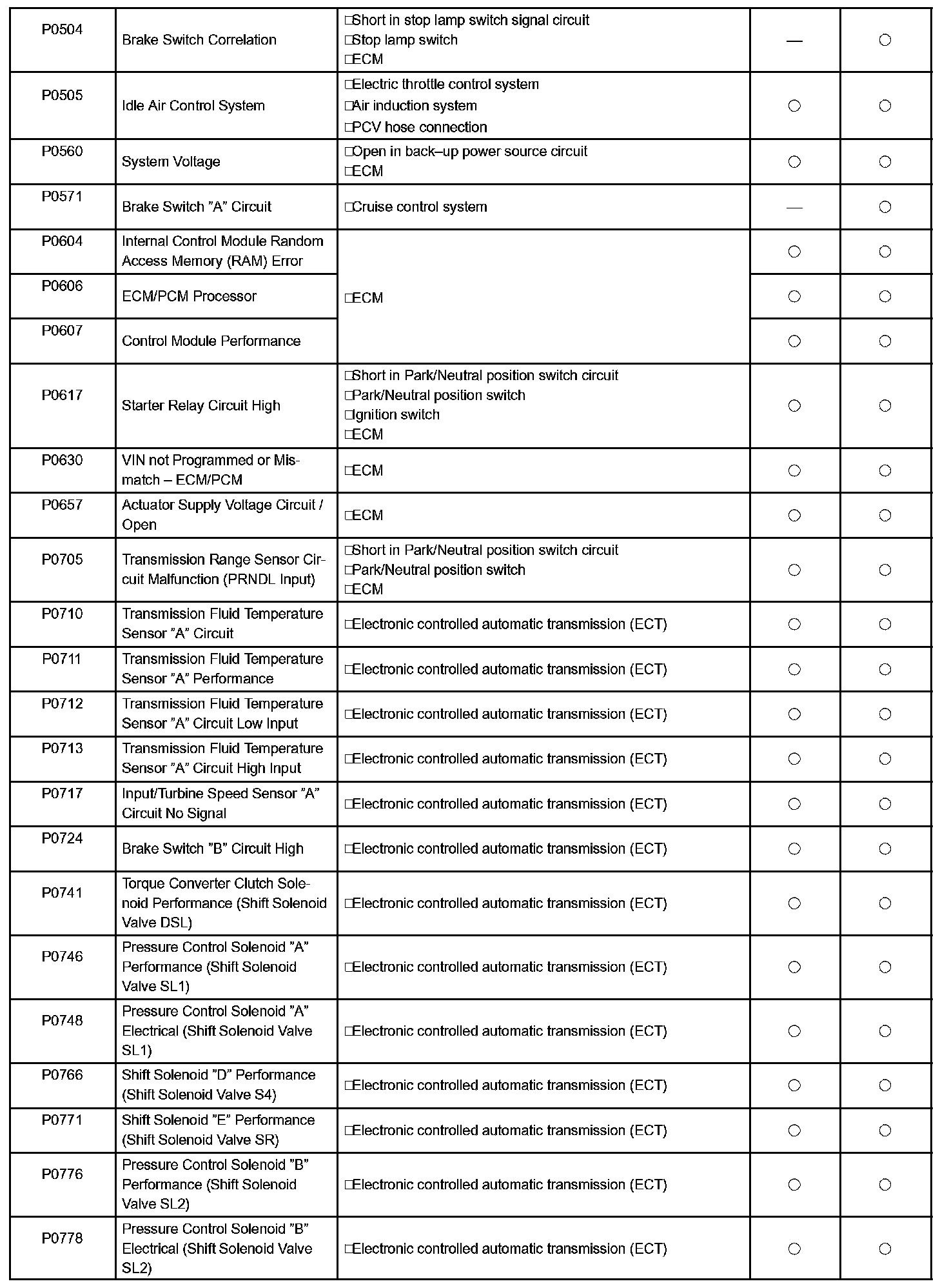 If a malfunction code is displayed during the DTC check in the check mode, check the circuit for the codes listed in the table below. For details of each code, refer to the respective "DTC No." in the DTC chart.
