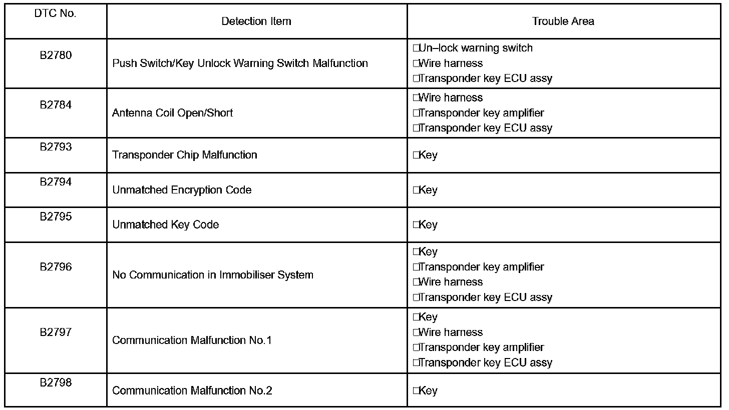 1. TRANSPONDER KEY ECU DIAGNOSTIC TROUBLE CODE CHART