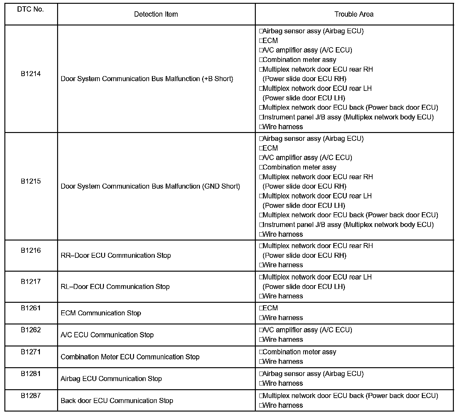 If a malfunction code is displayed during the DTC check, check the circuit listed for that code in the chart.