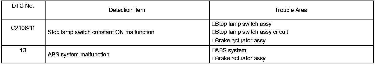 DIAGNOSTIC TROUBLE CODE CHARTC2106/11 - 13: