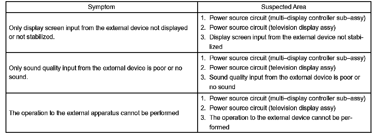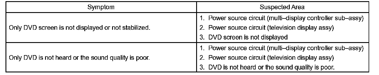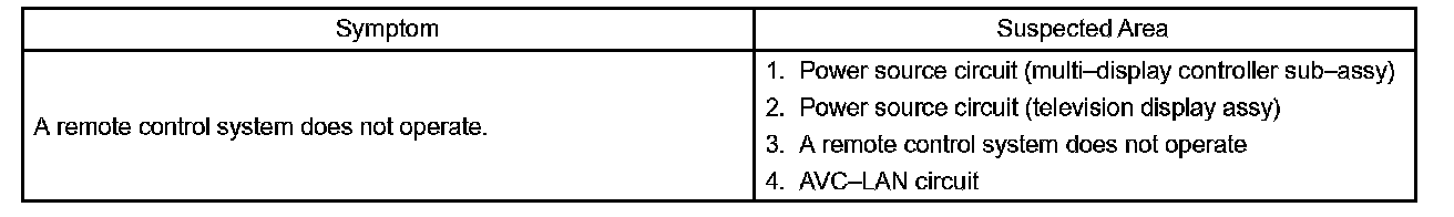 PROBLEM SYMPTOMS TABLEHINT: Inspect the "Fuse" and "Relay" before confirming the suspected area in the charts.