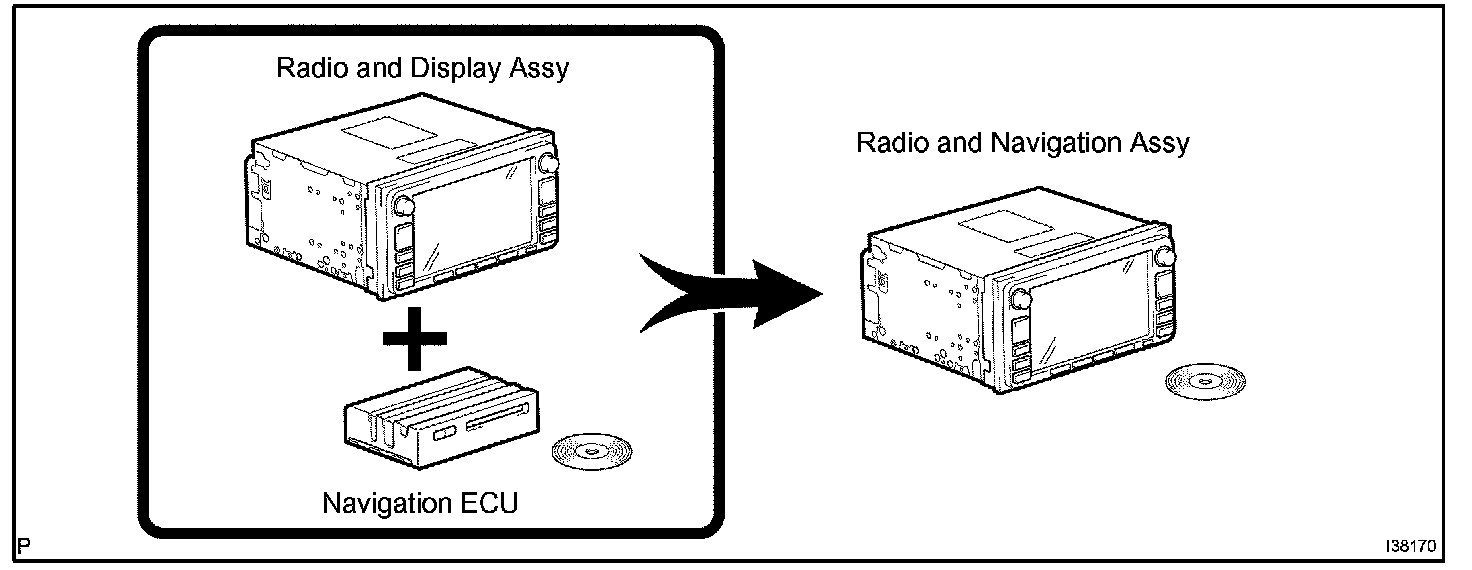 a. Conventionally, 2 separate devices, a "radio and display assy" and a "navigation ECU" are used. This model has adopted a new type, combining these devices into a single unit.