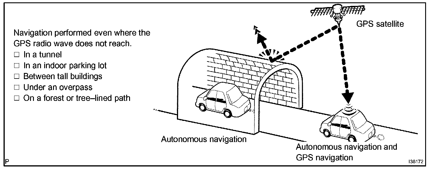 HINT: The combination of autonomous and GPS navigation makes it possible to display the vehicle position even when the vehicle is in places where the GPS radio wave cannot receive a signal. When only autonomous navigation is used, however, the mapping accuracy may slightly decline.