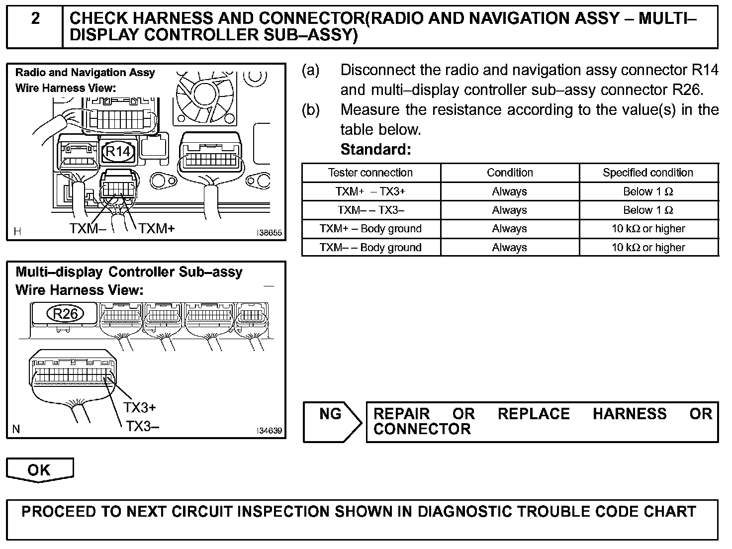 In the AVC-LAN, the radio and navigation assy becomes the communication master and has enough resistance necessary for communication.