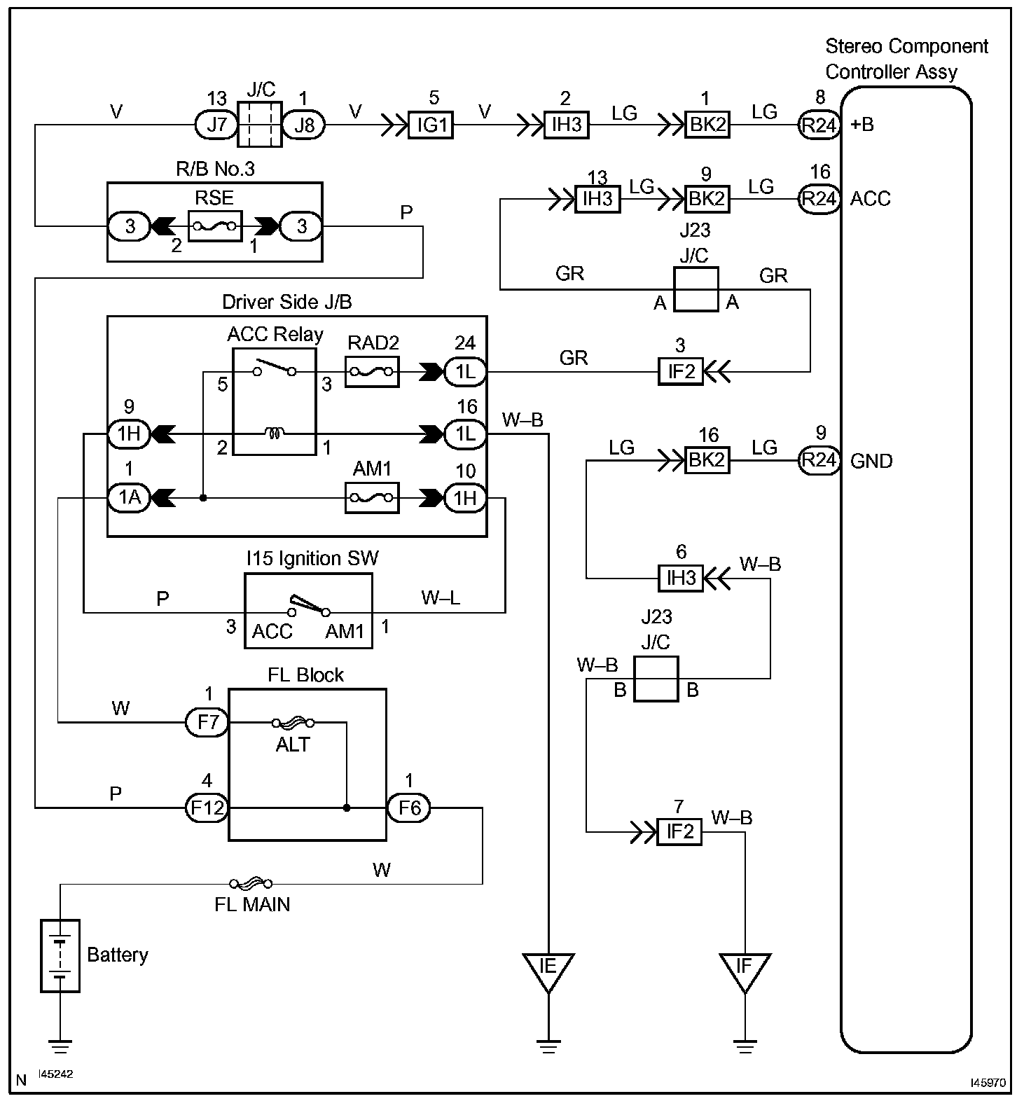 This circuit provides power to the stereo component controller assy.