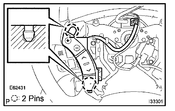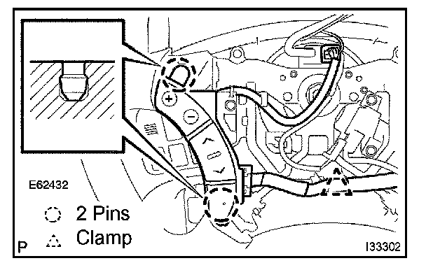 Release the 2 pin fittings and release the steering pad switch LH from steering wheel.