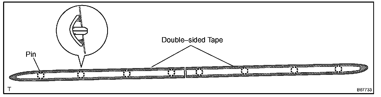 e. Match the reference pins on the moulding with the reference holes on the vehicle body.