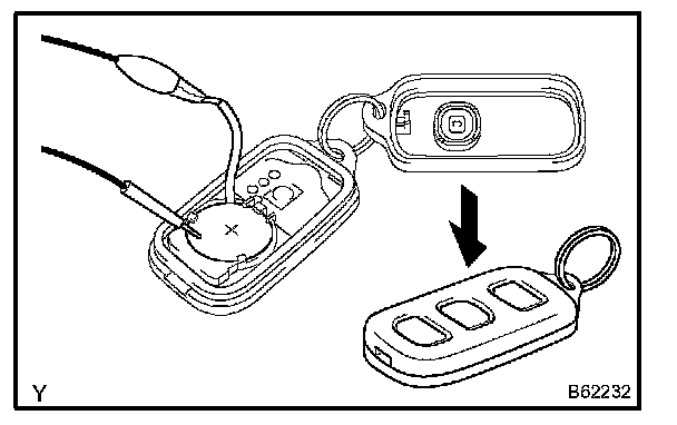 HINT: When a new or normal battery is not available, connect 2 new 1.5 V batteries in series, connect the battery positive (+) to the battery receptacle side terminal and battery negative (-) to the bottom terminal, then apply 3 V voltage to the transmitter.