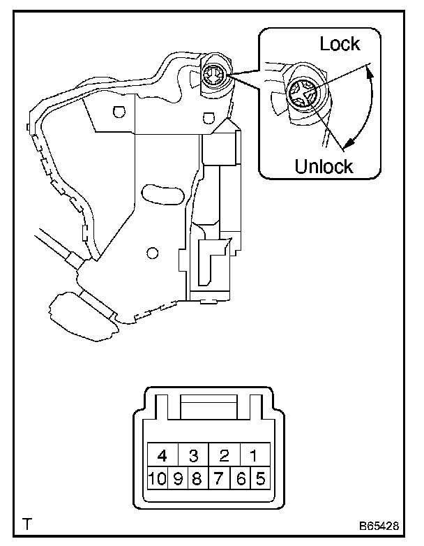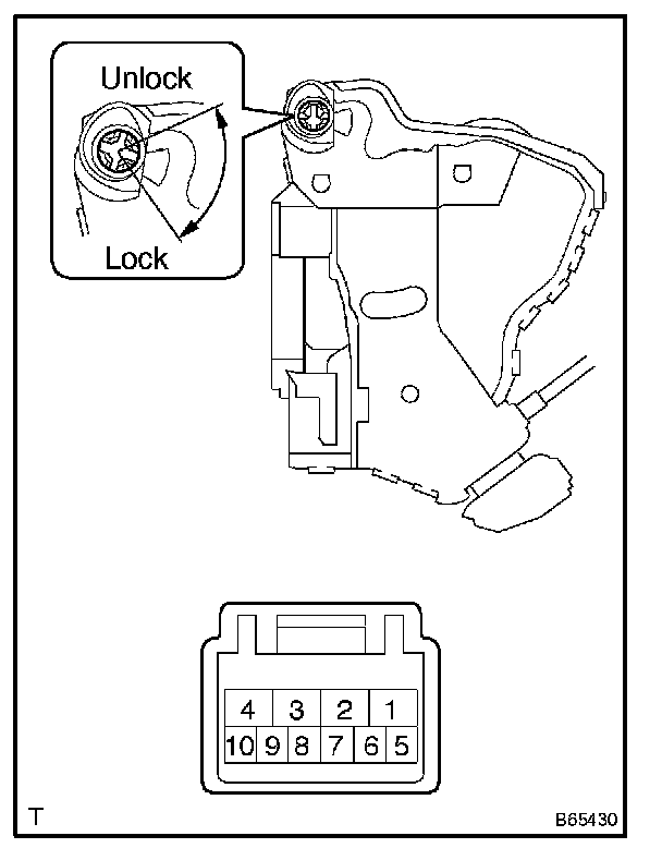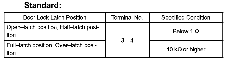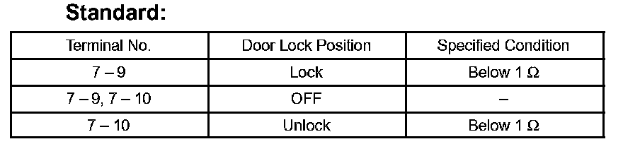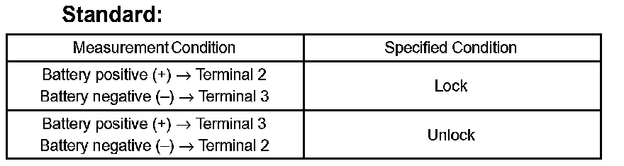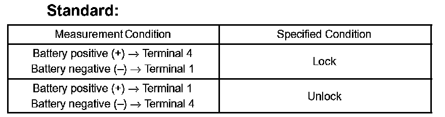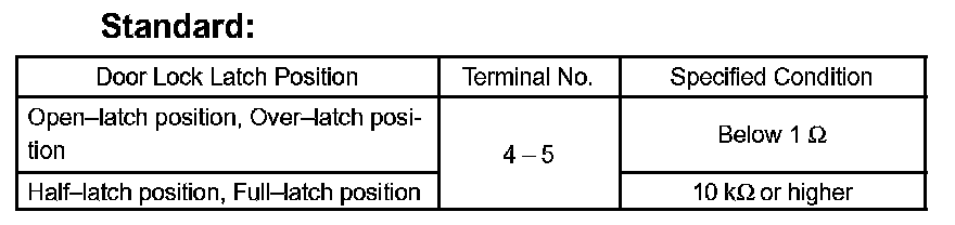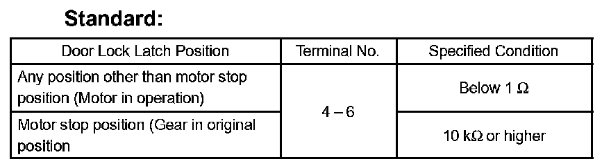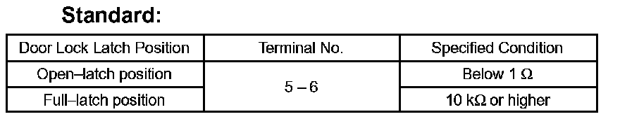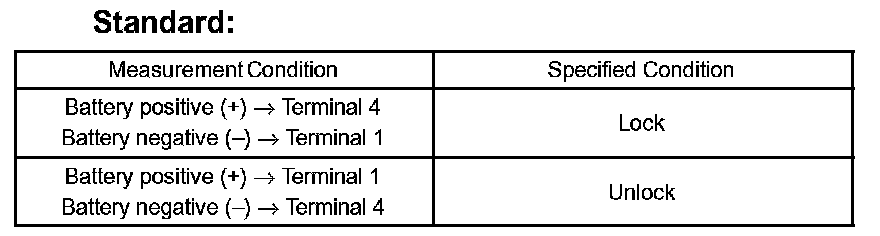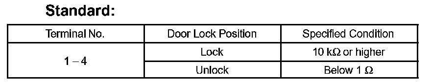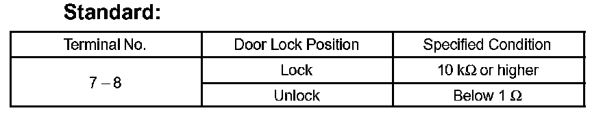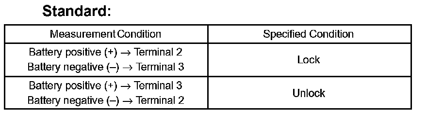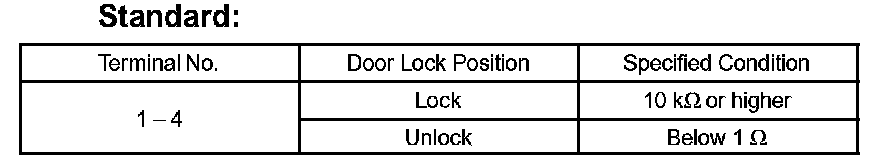 If the result is not as specified, replace the door lock assembly.