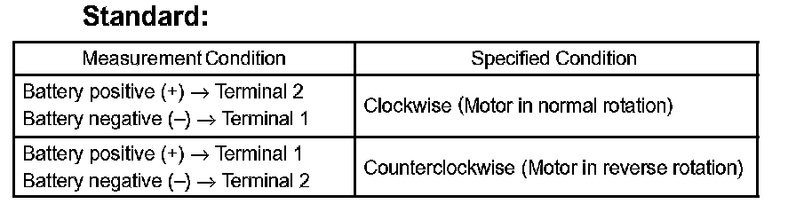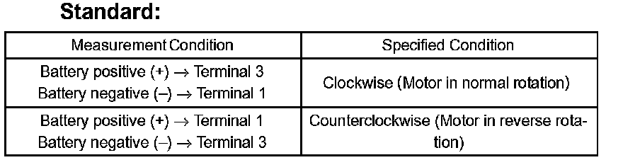 3. Inspect motor operation when battery voltage is applied to the terminals.