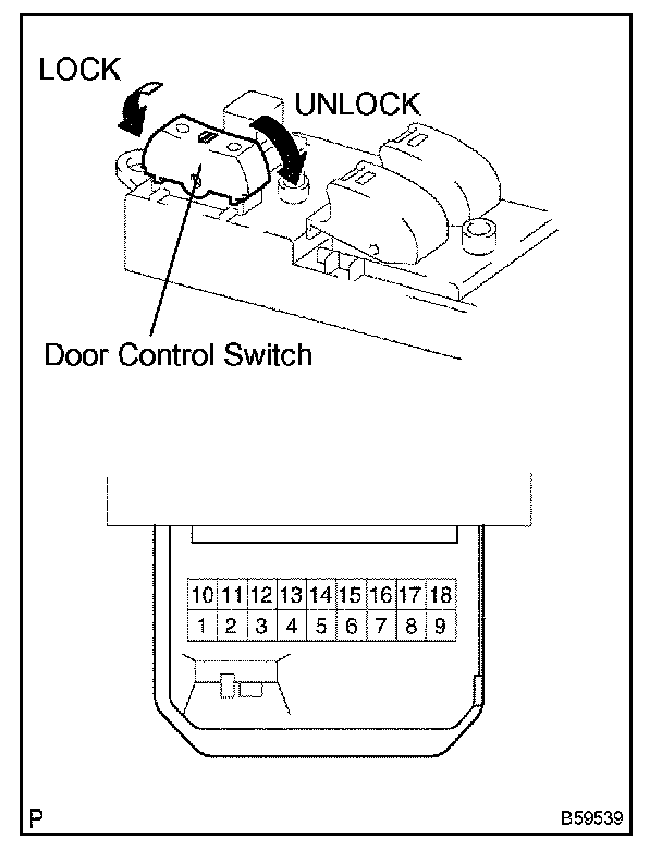 8. INSPECT DOOR CONTROL SWITCH ASSEMBLY