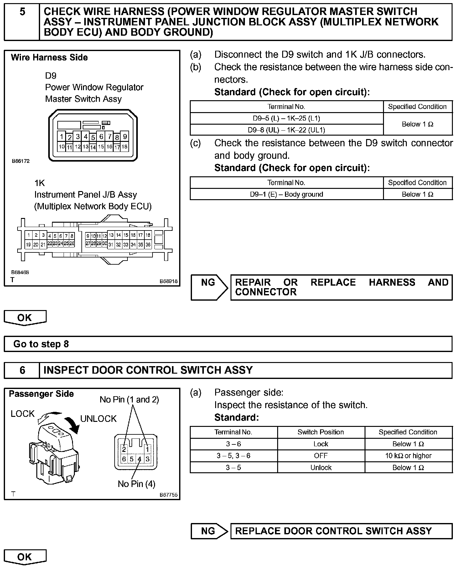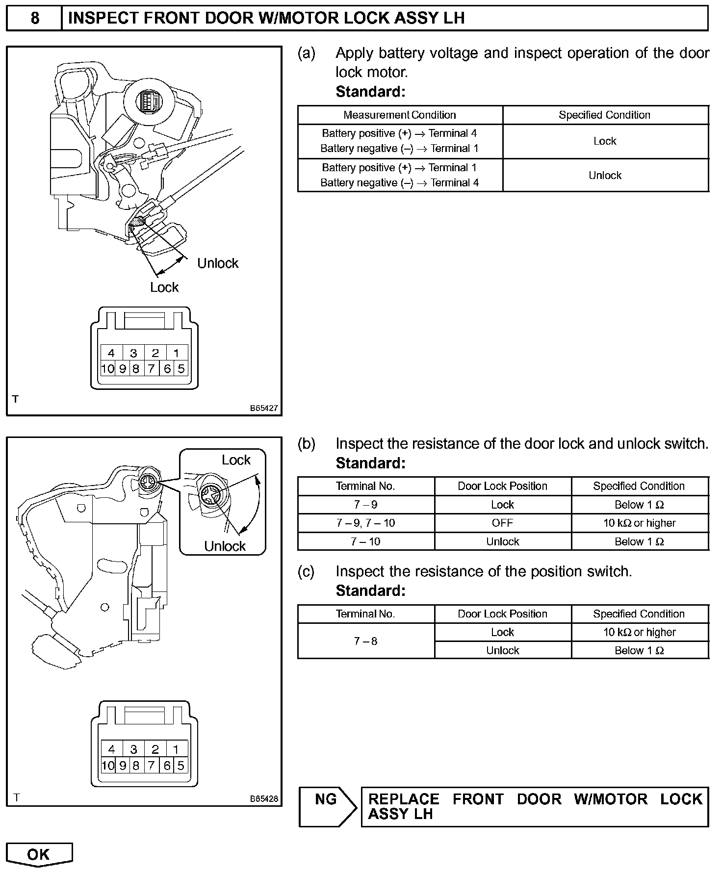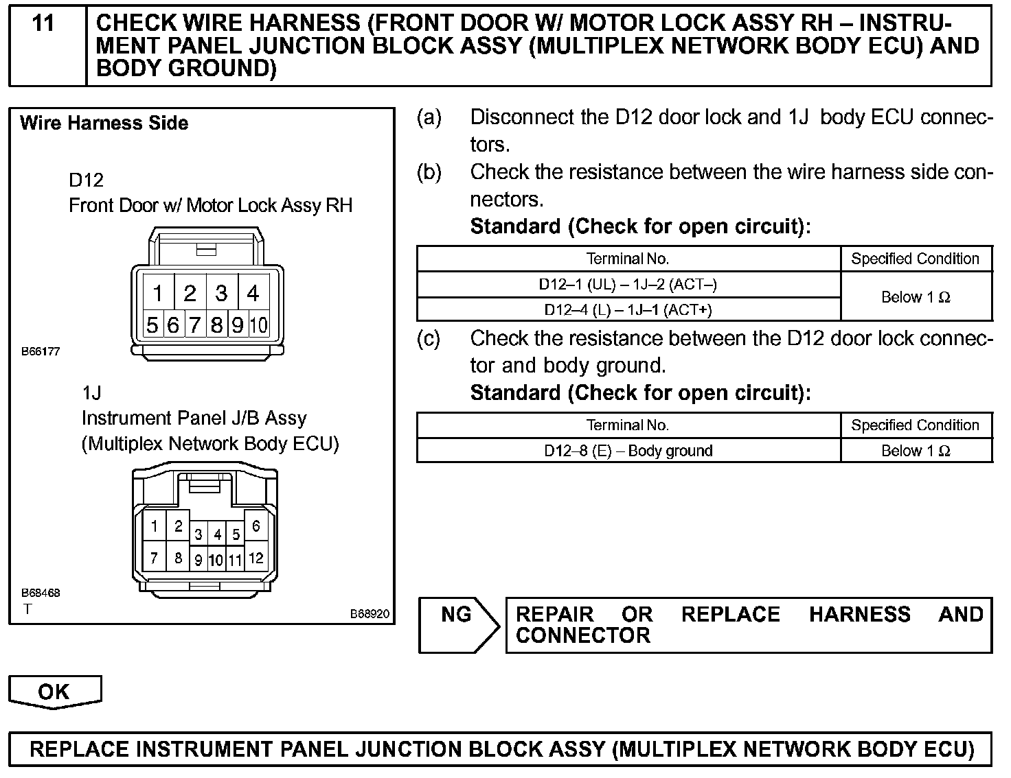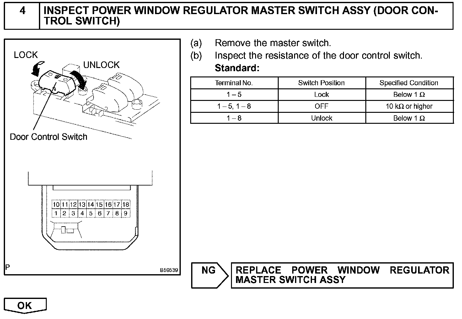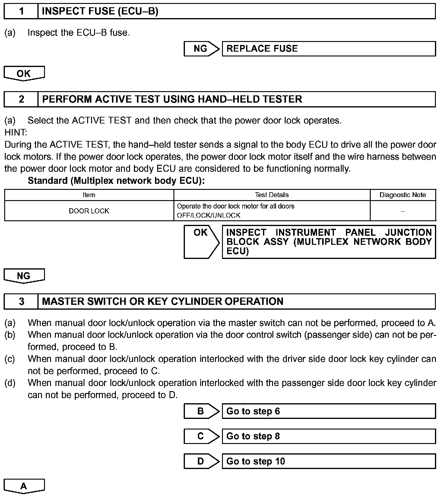 The body ECU receives a switch signal from the master switch, the door control switch, the driver door key cylinder and the passenger door key cylinder and then drives the door lock motor.