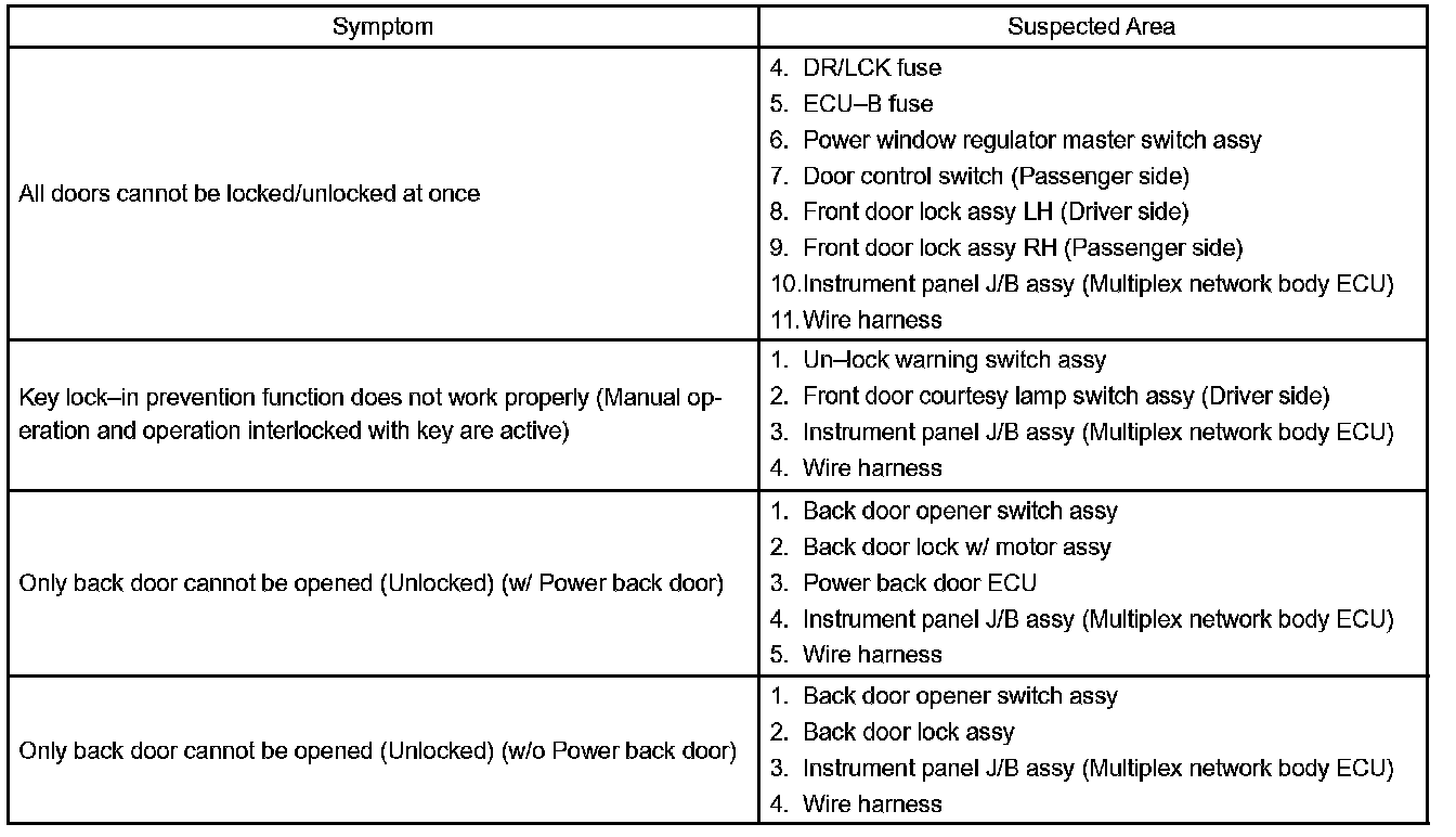 Problem Symptoms Table: