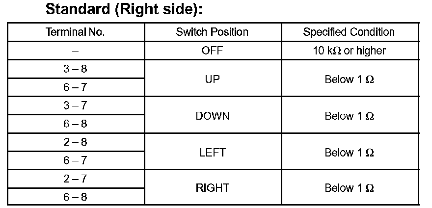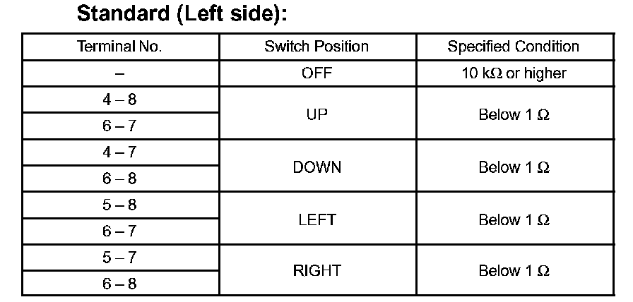 a. The L side of the left/right adjustment switch: Inspect the mirror switch resistance.