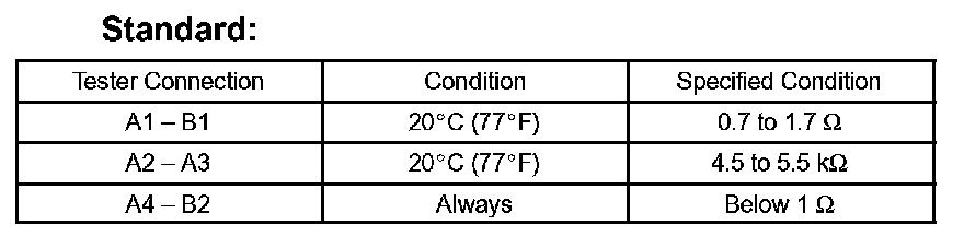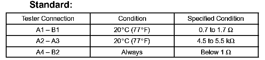 If the result is not as specified, replace the seatback heater assembly.