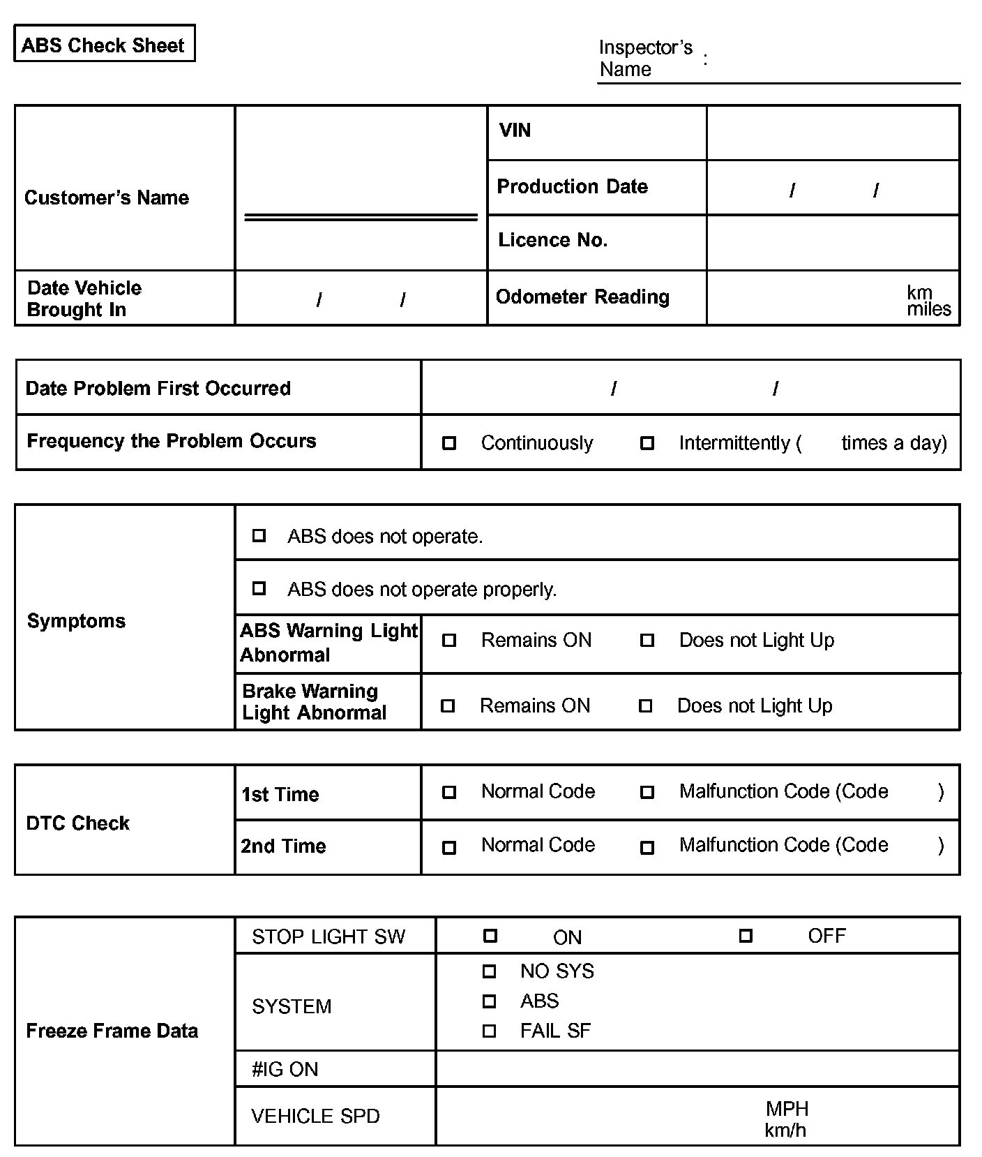 ABS Check Sheet: