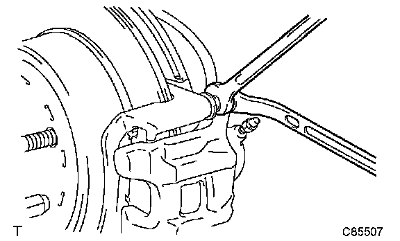 a. Remove the rear disc brake bleeder plug from the disc brake cylinder assembly rear LH.