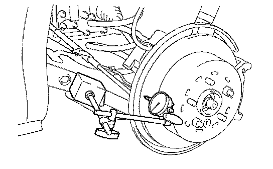 b. Using a dial indicator, measure the disc runout 10 mm (0.39 inch) away from the outer edge of the disc.