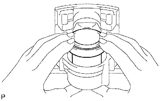 NOTICE: Do not install the piston forcibly in the disc brake cylinder.