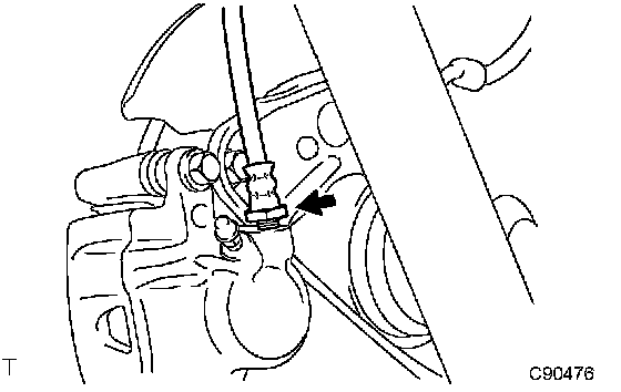 a. Remove the clip and a disconnect, the rear brake flexible hose.