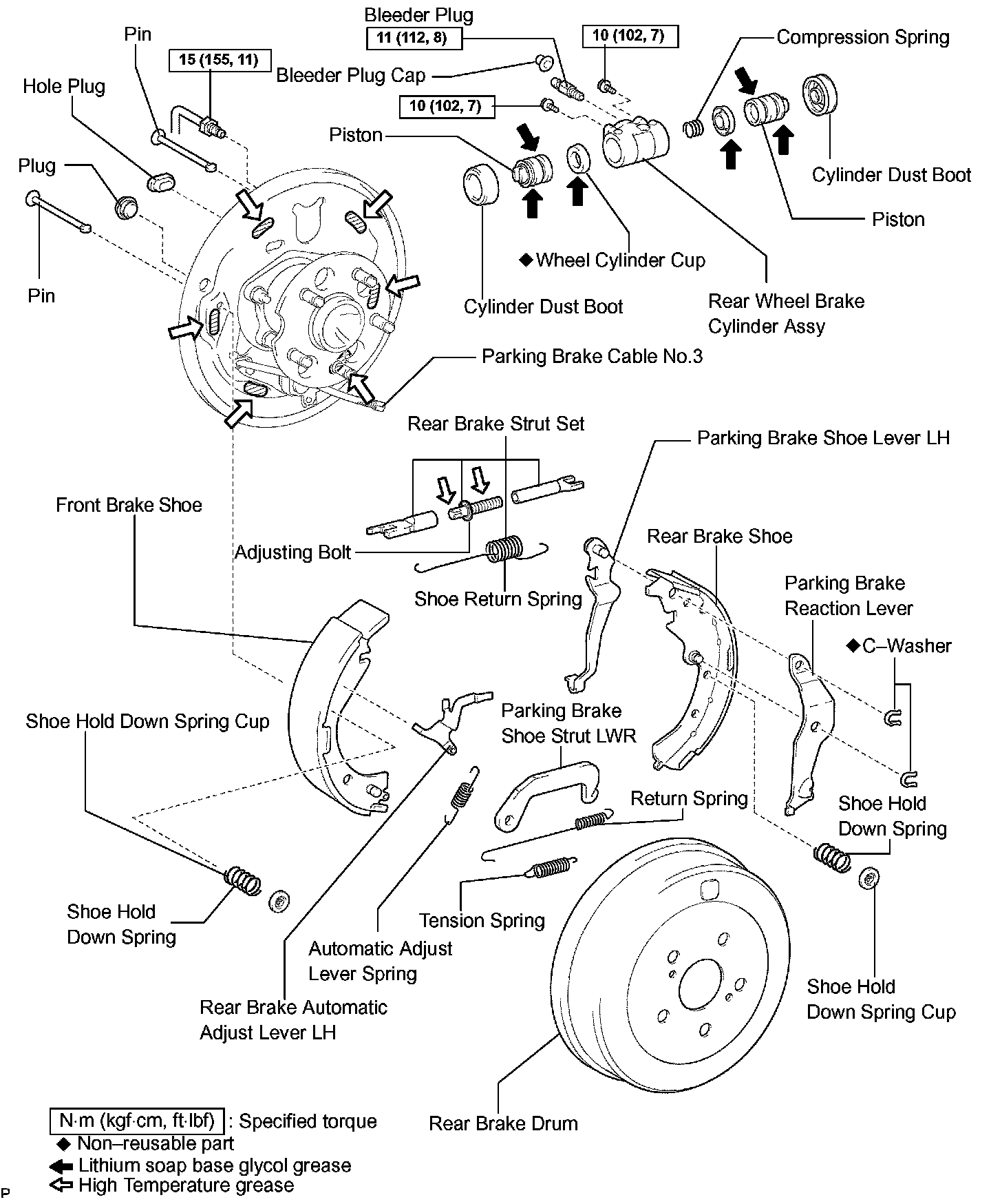 NOTICE: There should be no oil or grease adhering to the friction surfaces of the shoe lining and the drum.