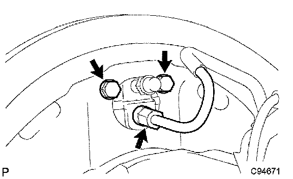 b. Remove the 2 bolts and rear wheel brake cylinder assembly.