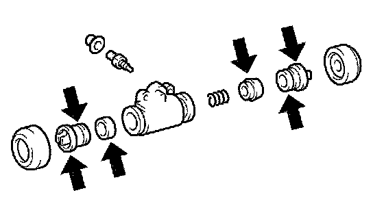 b. Apply lithium soap base glycol grease to the 2 new wheel cylinder cups and the 2 pistons.