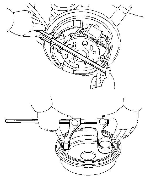 b. Measure the brake drum inside diameter and the diameter of the brake shoes. Check that difference between the diameter is the correct shoe clearance.