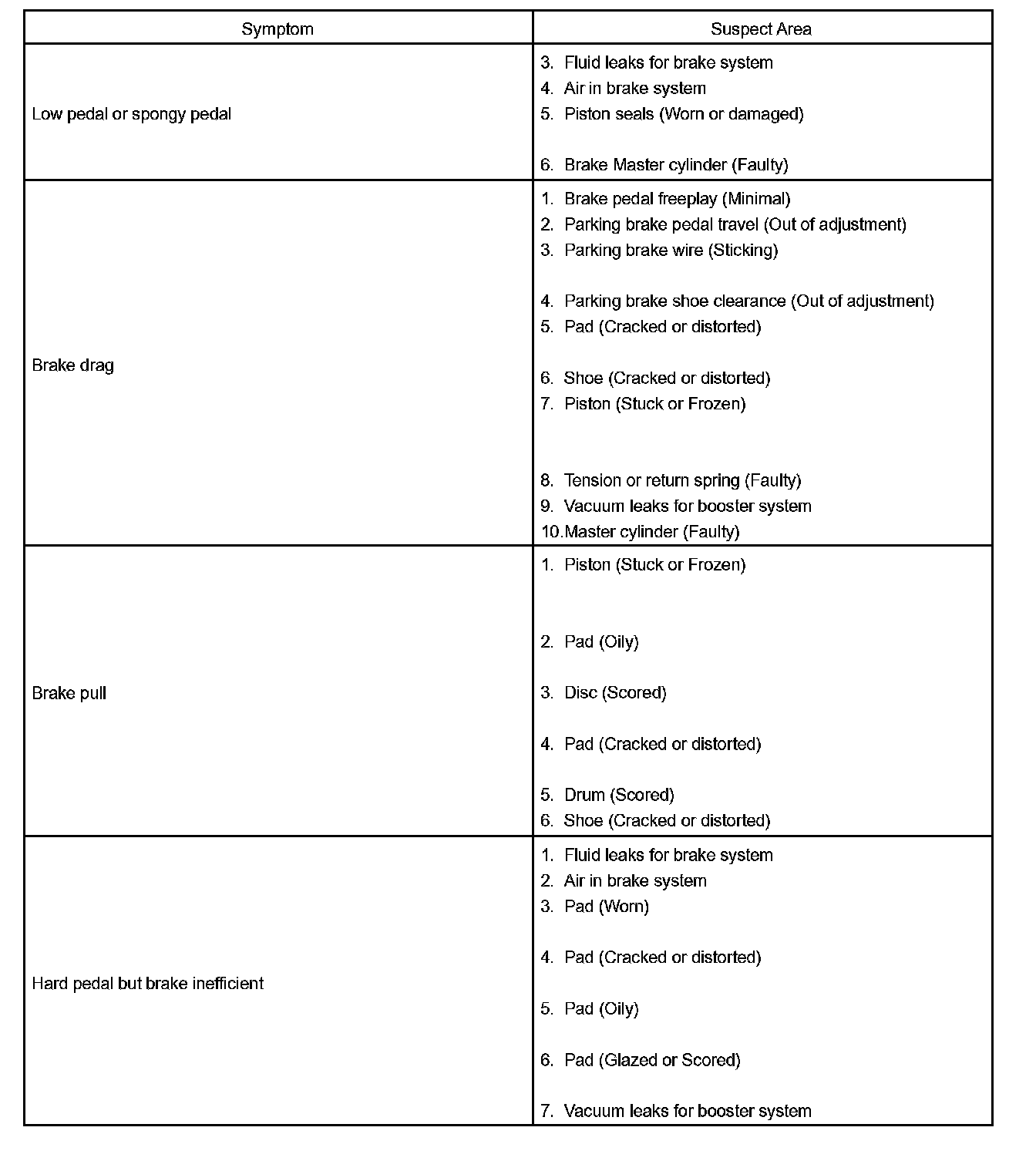 BRAKE SYSTEMPROBLEM SYMPTOMS TABLE