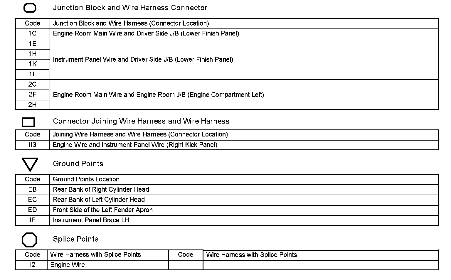 Locations: The locations of components, connectors, ground points, and splices referred to within these diagrams can be found at Vehicle Locations. Locations
