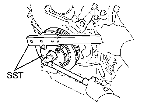 1. Temporarily install the crankshaft pulley bolt and the washer to the crankshaft.